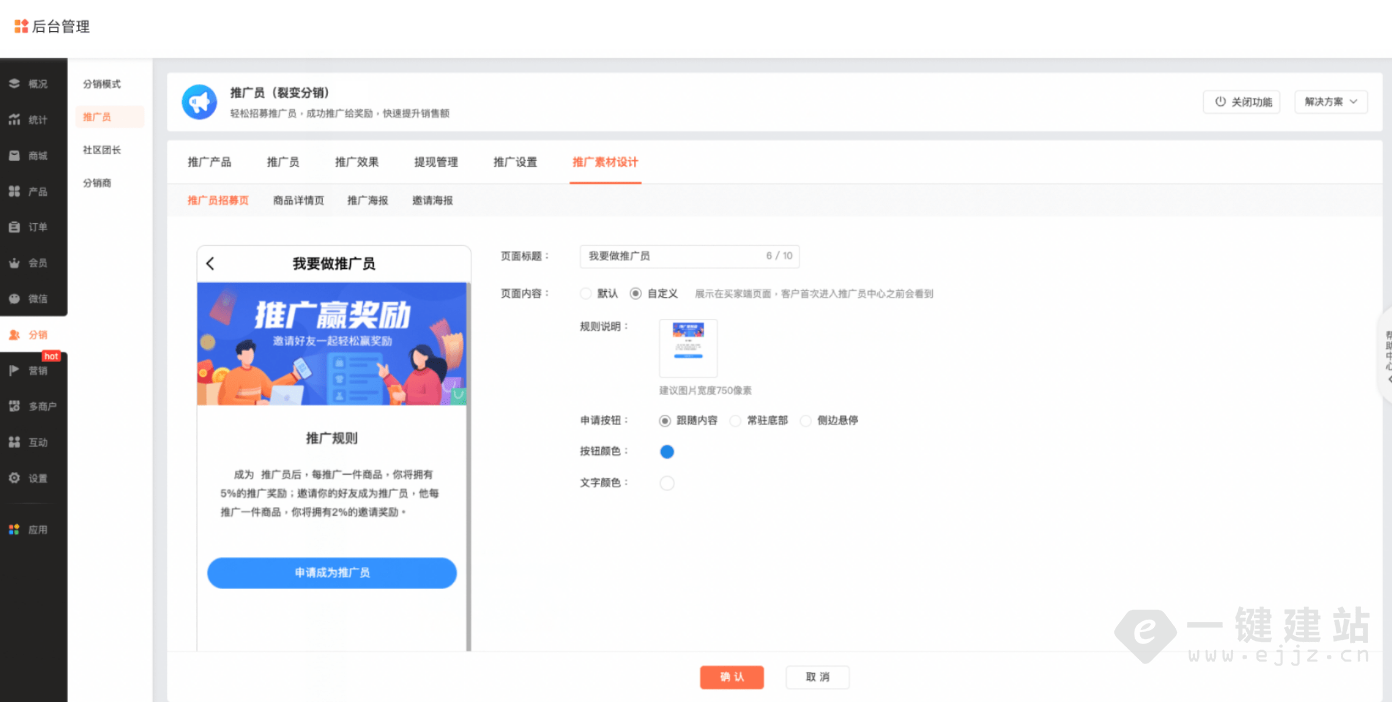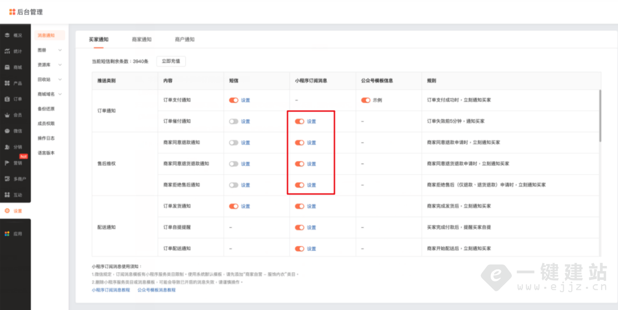 ▼ 使用场景 支持商家按周期限购,帮助商家更精确地制定限购策略,拓展更多经营场景,提升商城经营效率。 ▼ 效果说明 前往商城后台“产品-产品管理”,可对指定产品设置终身/每小时/每天/每周/每月/每笔订单限购。 二、优化产品模块展示效果 ▼ 使用场景 针对产品展示、产品分类模块,优化展示效果,支持展示更多产品信息,优化访客在商城的浏览、下单体验,进一步提升商城口碑。 ▼ 效果说明 前往装修小程序商城,点击产品展示、分类模块进行编辑: ▲产品展示 ▲产品分类 三、优化推广员招募页 ▼ 使用场景 优化招募页设计效果,帮助商家在招募页中自由展示更多内容(如品牌推广、规则说明等),提升推广员招募效率。 ▼ 效果说明 前往商城后台“推广员-推广素材设计-推广员招募页”,进行页面设计: 四、优化买家订阅消息通知 ▼ 使用场景 拓展更多小程序订阅消息通知类型,优化买家对在商城操作后获得的反馈,提升商城访问、购物体验。 ▼ 效果说明 前往商城后台“设置-消息通知-买家通知”中,管理小程序订阅消息: