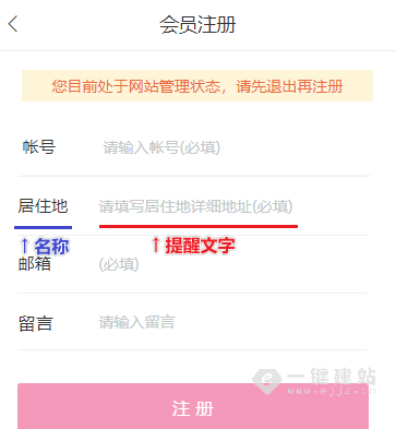 提醒文字:在填写框中的提示文字(非必填项)。