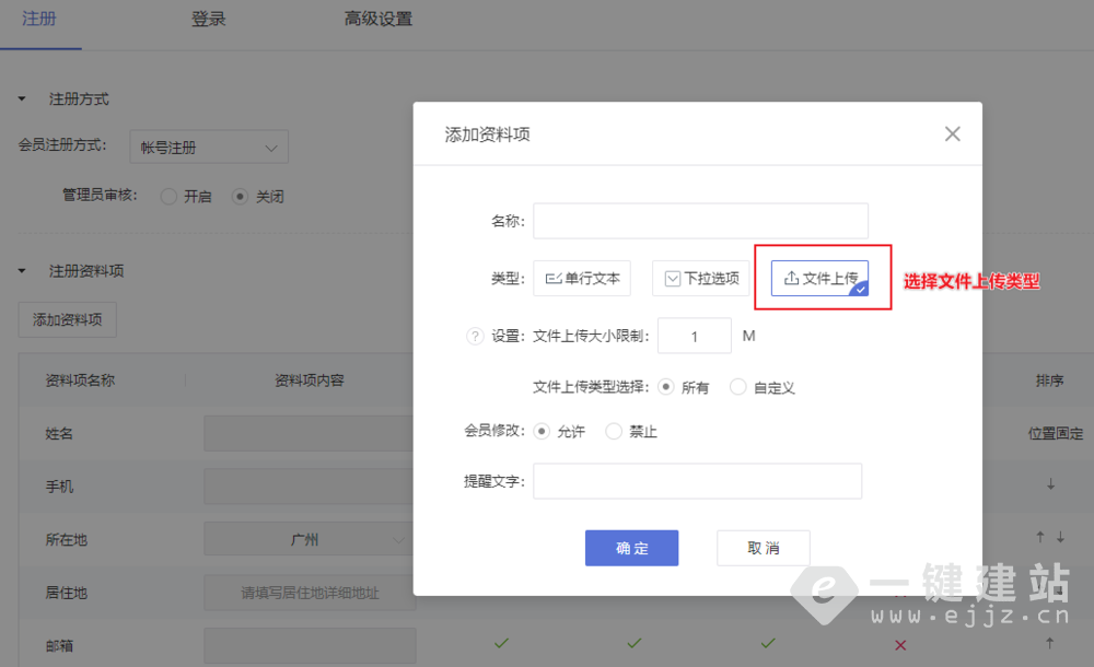 网站系统【会员注册资料项】功能说明及操作教程