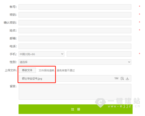 完成添加后,会员在注册页面可上传文件。
