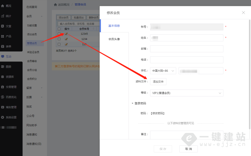 如在会员注册前没有开启【添加文件】功能,管理员还能在此上传文件给到会员查看。